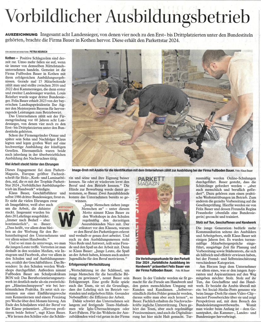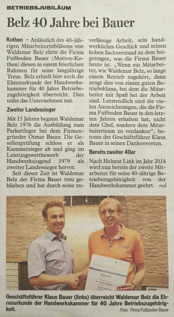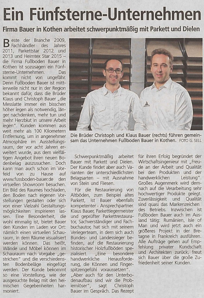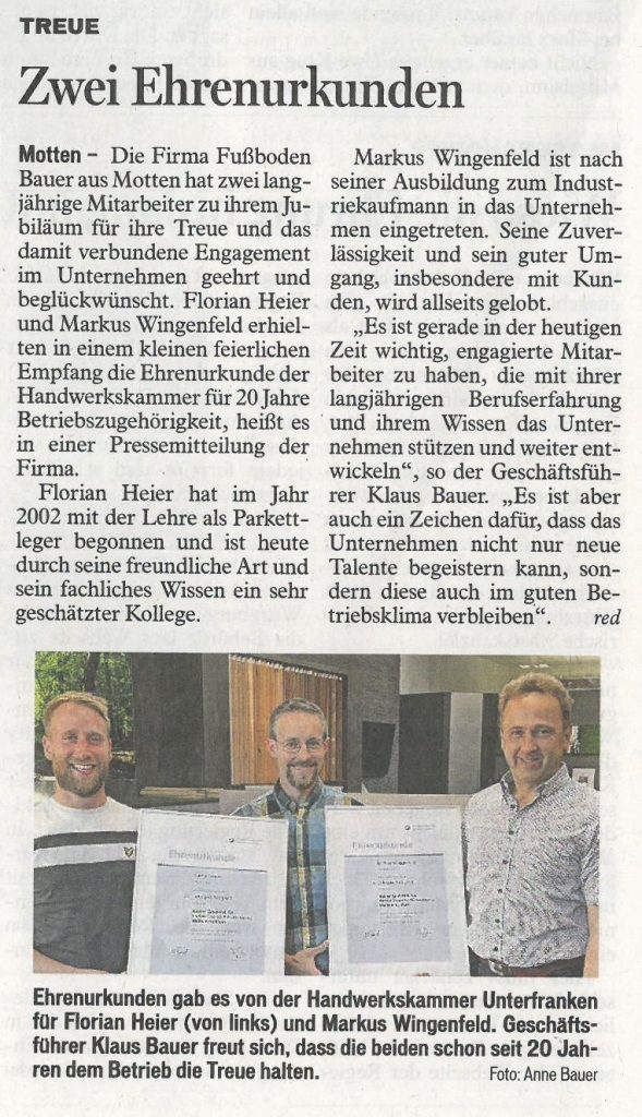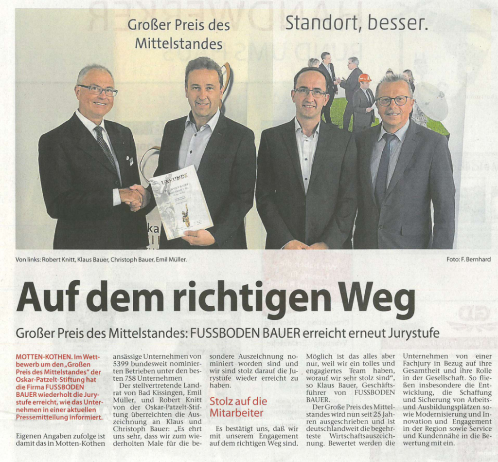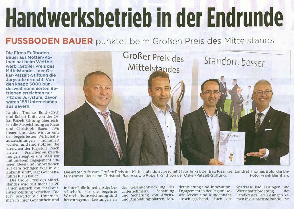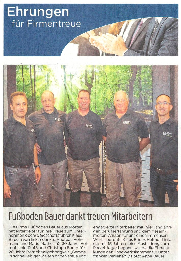 Zeitungen erreichen einen Großteil der Bevölkerung in Deutschland – ob gedruckt, online oder mobil. Auch über unsere Arbeiten als Fachbetrieb für Fußbodenbau wird dort regelmäßig berichtet. Bleiben Sie informiert über aktuelle Projekte, Innovationen und Entwicklungen in unserem Unternehmen.