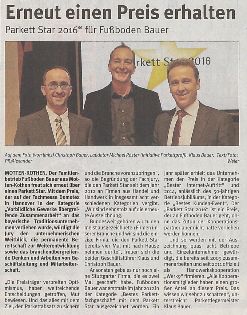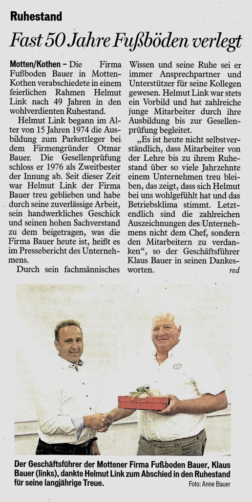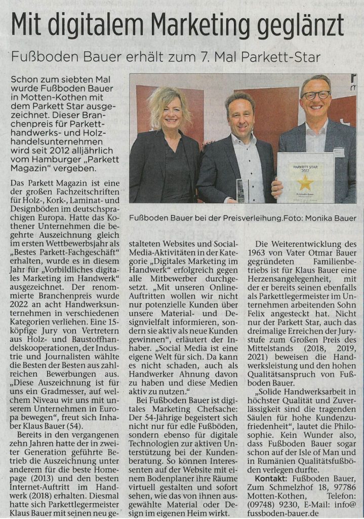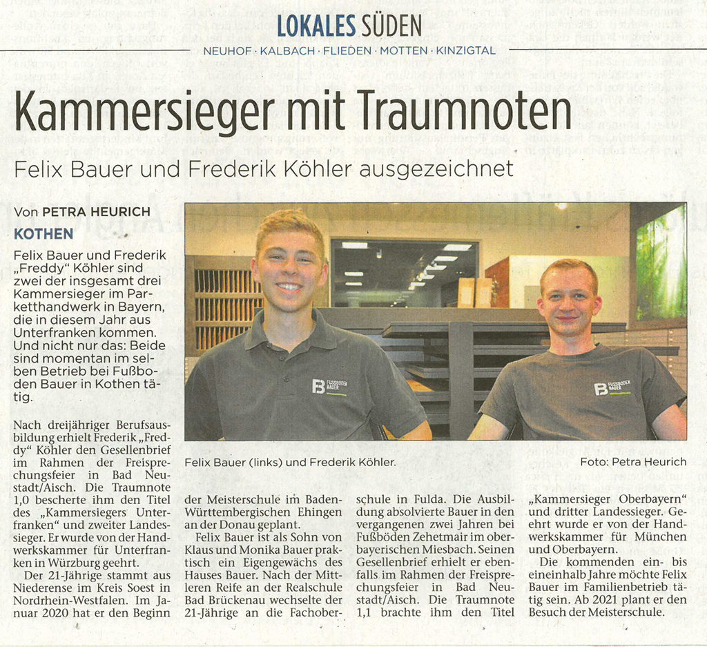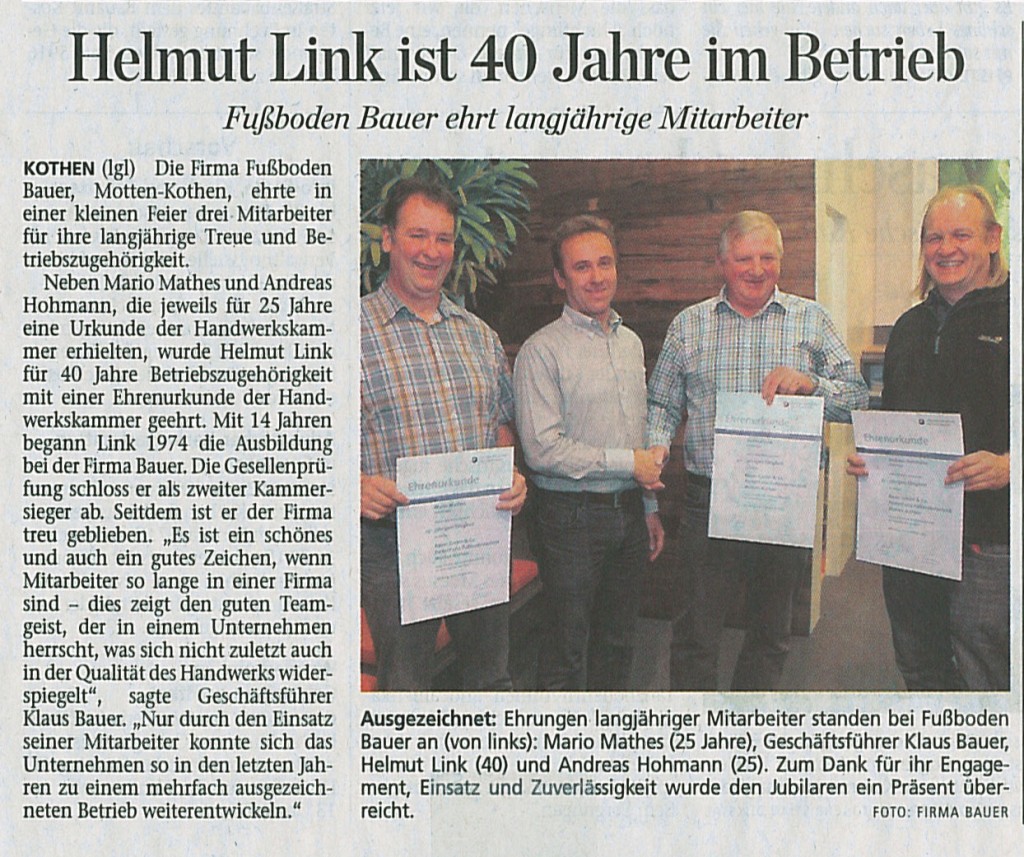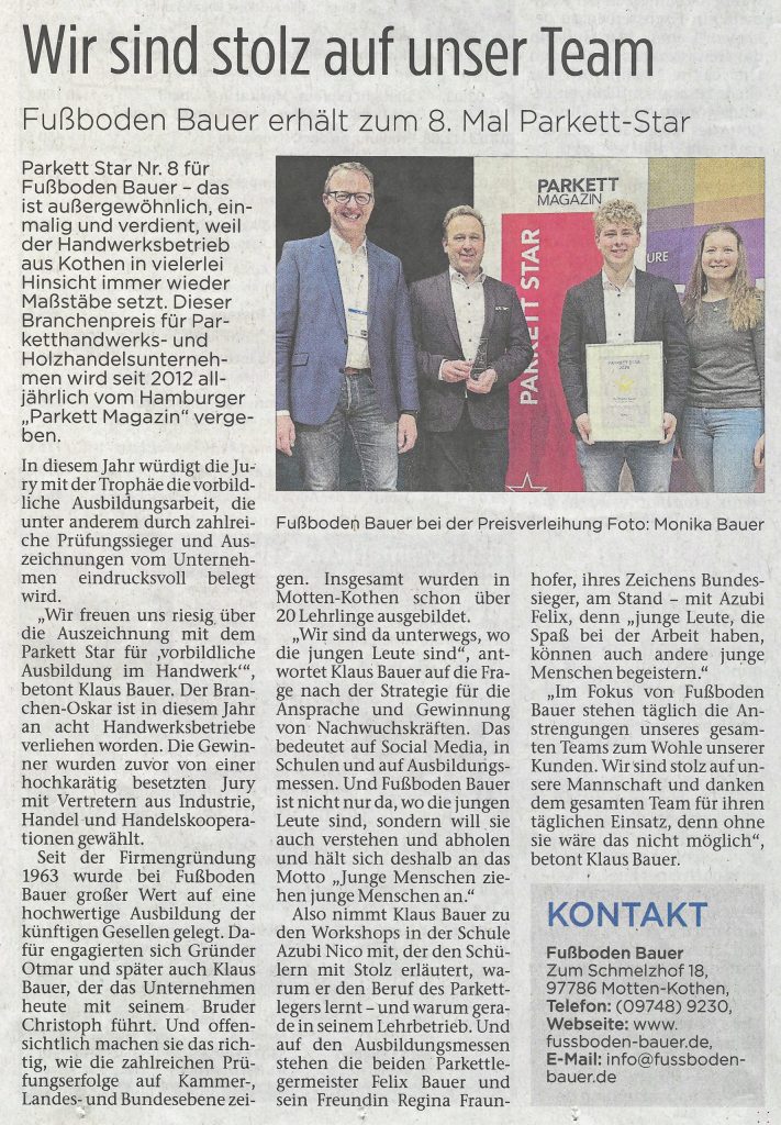 Zeitungen erreichen einen Großteil der Bevölkerung in Deutschland – ob gedruckt, online oder mobil. Auch über unsere Arbeiten als Fachbetrieb für Fußbodenbau wird dort regelmäßig berichtet. Bleiben Sie informiert über aktuelle Projekte, Innovationen und Entwicklungen in unserem Unternehmen.