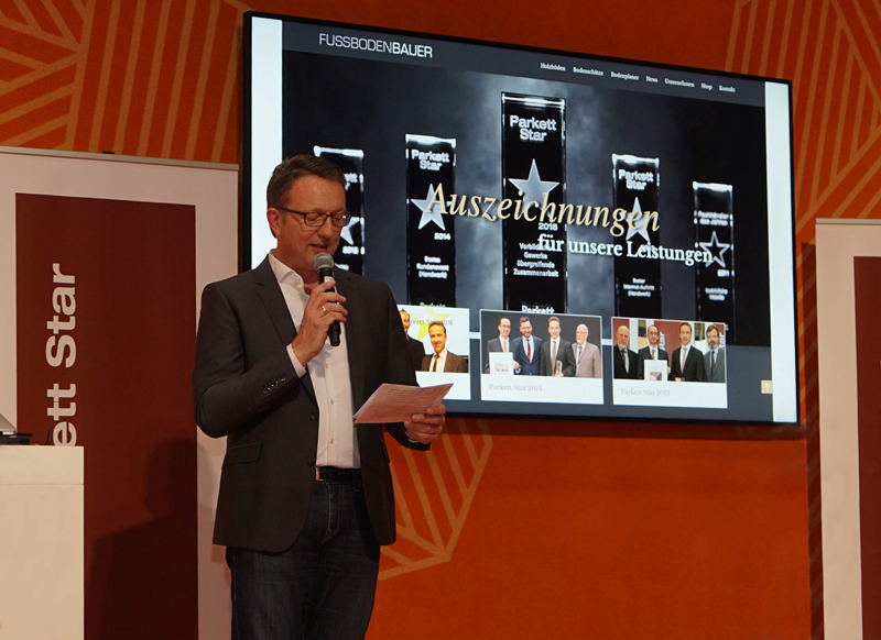 Nach den Prämierungen 2012 als „Bestes Parkettfachgeschäft, 2013 als „Bester Internetauftritt“, 2014 als „Bestes Kundenevent“ und 2016 als „Vorbildliche Gewerke übergreifende Zusammenarbeit“ konnte das Unternehmen in diesem Jahr mit dem Relaunch der Webseite die 16-köpfige Jury überzeugen. „Vor allem die emotionale Ansprache, die nutzerfreundlichen Features mit seinen neuen inhaltlichen Ideen hat die Firma FUSSBODEN BAUER verdient die Auszeichnung mit dem „Parkett-Star“ in dieser Kategorie erhalten“, so der Laudator Klaus Stolzenberger.